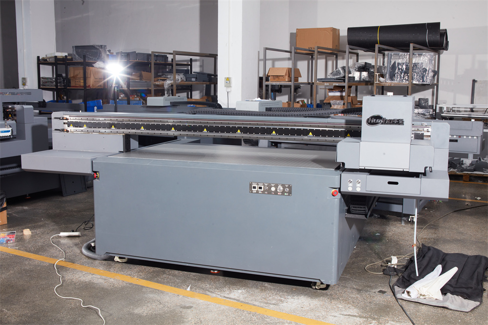 华弘1810uv平板打印机,打印幅面1.8m*1m,配备智能分区吸风平台,机架全钢结构退火处理龙门精铣,led固化系统即打即干。